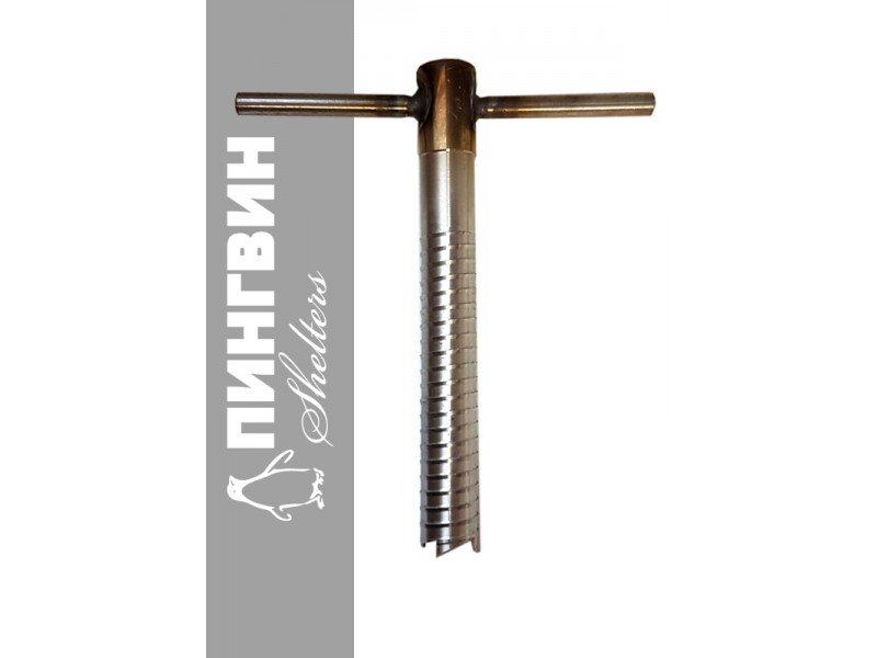 Ввертыш изготовлен из нержавеющей стали, имеет приваренную ручку для удобства вкручивания, в которую не забивается ледяная крошка.