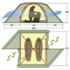 Внутренняя палатка просторная и очень комфортная. С помощью оттяжек с пластиковыми крючками она растягивается на фибреглассовых дугах каркаса. Время сборки составляет не более минуты. Дуги каркаса эластичные прочные, диаметром 9.5 мм. По бокам внутренней палатки натянута стропа, которая не дает соприкасаться внешнему и внутреннему тенту даже в сильный ветер, спасая от проникновения конденсата.